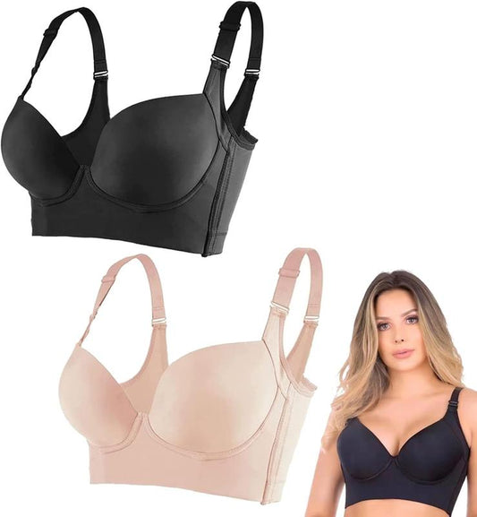 2 Pack Corrective Bra High Side Retraction Large Size Large Chest Small Retraction Side Retraction Adjusting Underwear Thin Style Comfort Womenswear Adjustable Wireless Women'S Underwire Underwire Full Fit Breathable Silky Solid Seamless Wireless Bra