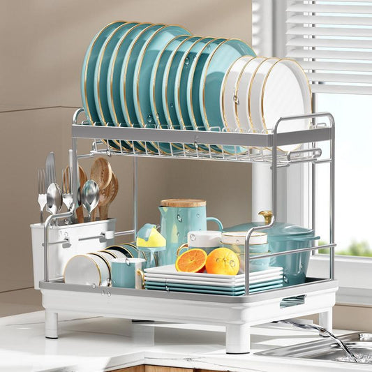 2-Tier Dish Drainer Rack, 1 Count Kitchen Countertop Dish Drying Rack, Kitchen Utensils & Gadgets